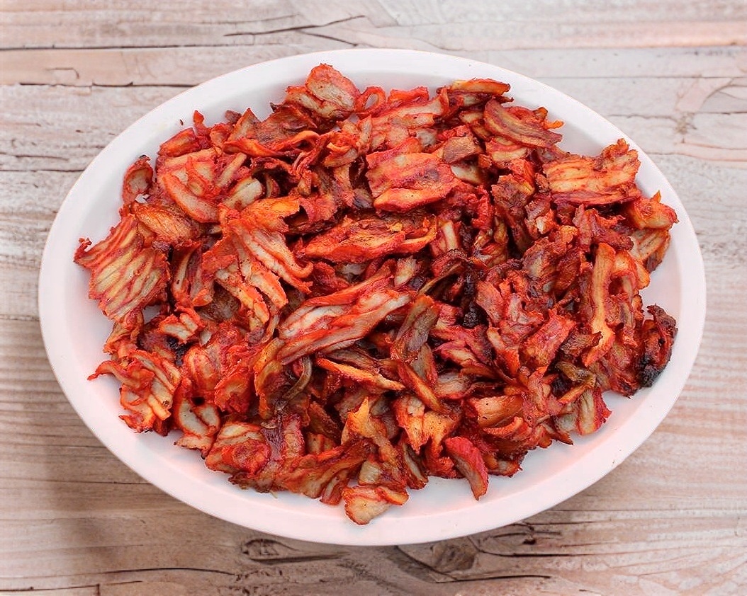 Carne de pastor con pimiento, cebolla, jamón, tocino y piña gratinado con queso.