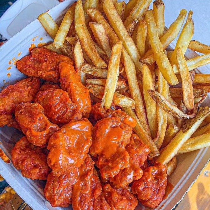 🍗 Orden de Boneless Incluye: 200 gramos de boneless Porción de papas fritas 🍟 Dip de ranch 1 salsa a elegir