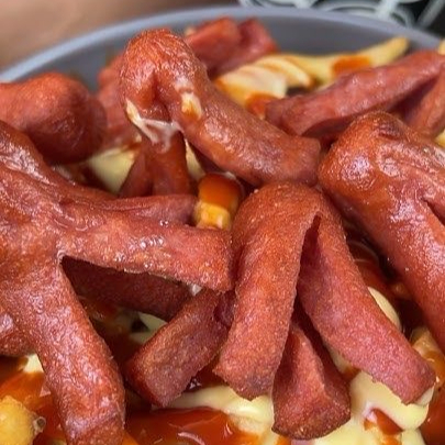 Papas fritas crujientes con salchicha en trozos, bañadas con mayonesa, queso amarillo y un toque de cátsup. Una combinación clásica, bien servida y perfecta para el antojo