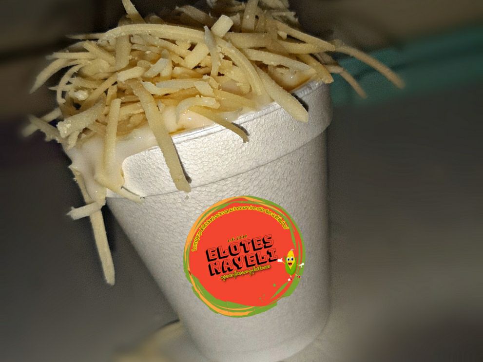Elote entero con desgranado, acompañado de mayonesa, crema y queso blanco.