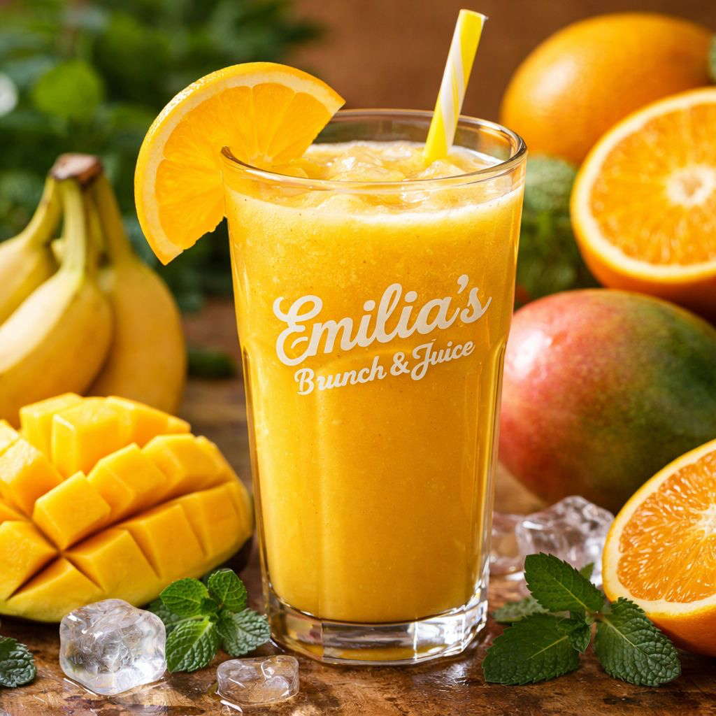 Dale a tu cuerpo el impulso que necesita con esta mezcla vibrante y sedosa. El dulzor del mango maduro y la cremosidad del plátano se funden con el toque refrescante del jugo de naranja recién exprimido. Rico en potasio y vitaminas, es el desayuno líquido perfecto.