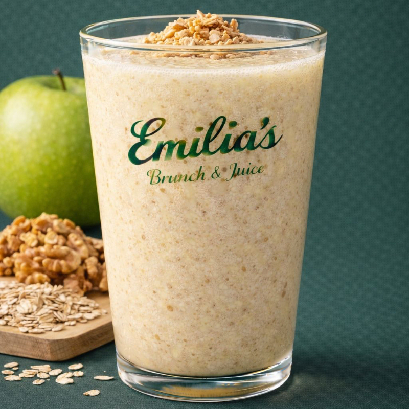 Dale a tu día un inicio inteligente. Este licuado es una fuente excelente de fibra y grasas saludables gracias a la mezcla de avena y trozos de nuez. La manzana aporta el dulzor natural y la canela el aroma perfecto para un brunch equilibrado. Energía duradera en cada sorbo.