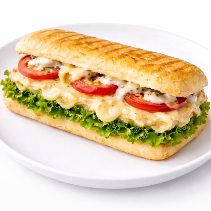 Pechuga de pollo a la plancha con queso gratinado, vegetales seleccionados (lechuga, tomate y cebolla) y nuestra mezcla de aderezos Ranch y Casa. Una opción abundante, nutritiva y lista para llevar.