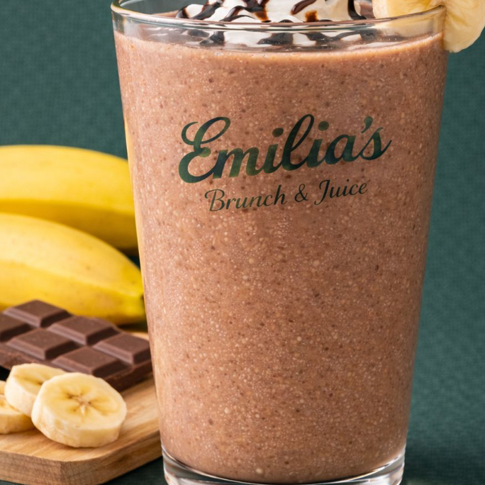 La pareja perfecta: la cremosidad del plátano maduro se fusiona con el sabor intenso del chocolate premium en una base de leche sedosa. Un licuado con cuerpo, ideal para recuperar energías después del ejercicio o para disfrutar de un brunch con un toque dulce y reconfortante. Pura energía deliciosa.