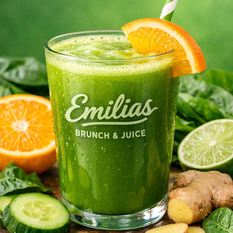 Una mezcla equilibrada y potente diseñada para renovarte. La frescura del pepino y las espinacas se fusiona con el toque audaz del jengibre fresco, todo realzado por una explosión cítrica de limón y naranja recién exprimida. Hidratante, antiinflamatorio y absolutamente delicioso.