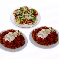 Bistec, chorizo, queso con tamaño de un kilo en total y tortillas de maíz 100 g.
