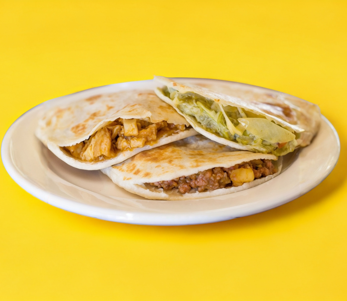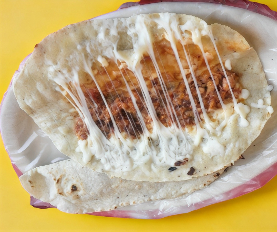 1 tortilla de harina con queso y un guiso a elegir.