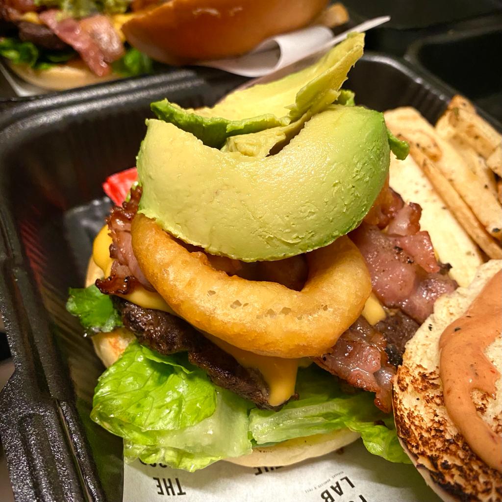 Hamburguesa preparada con carne 100% de res, mayonesa chipotle, queso amarillo, tocino, aros de cebolla, salsa BBQ HOT. Incluye porción de papas (El aguacate tiene un costo adicional).