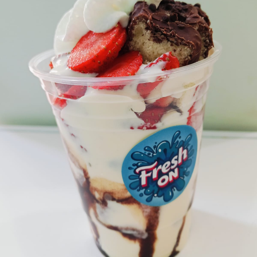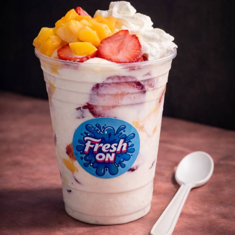 Fruta a elegir, con crema especial. con 3 toppings clásicos