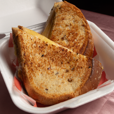 Tostado en mantequilla. Jamón de pavo, queso manchego, mayonesa y mostaza