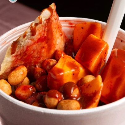 papas naturales, mezcla de salsas, mango, cacahuates japoneses, pulparindots.