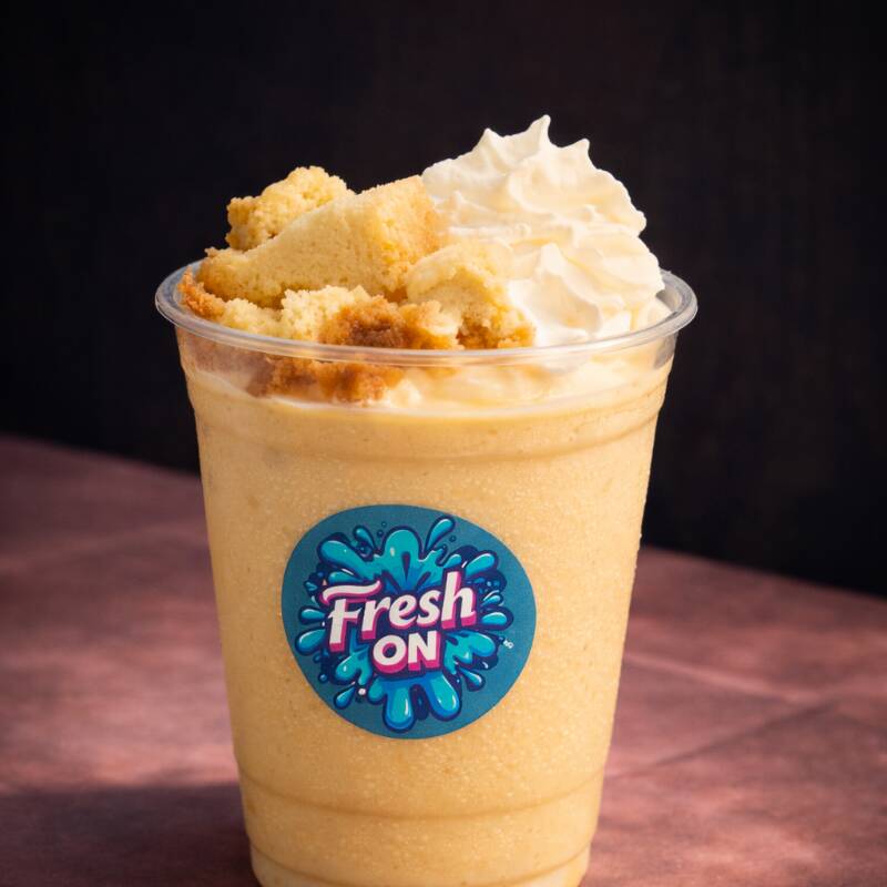 Bebida cremosa de mango con trozos de cheesecake