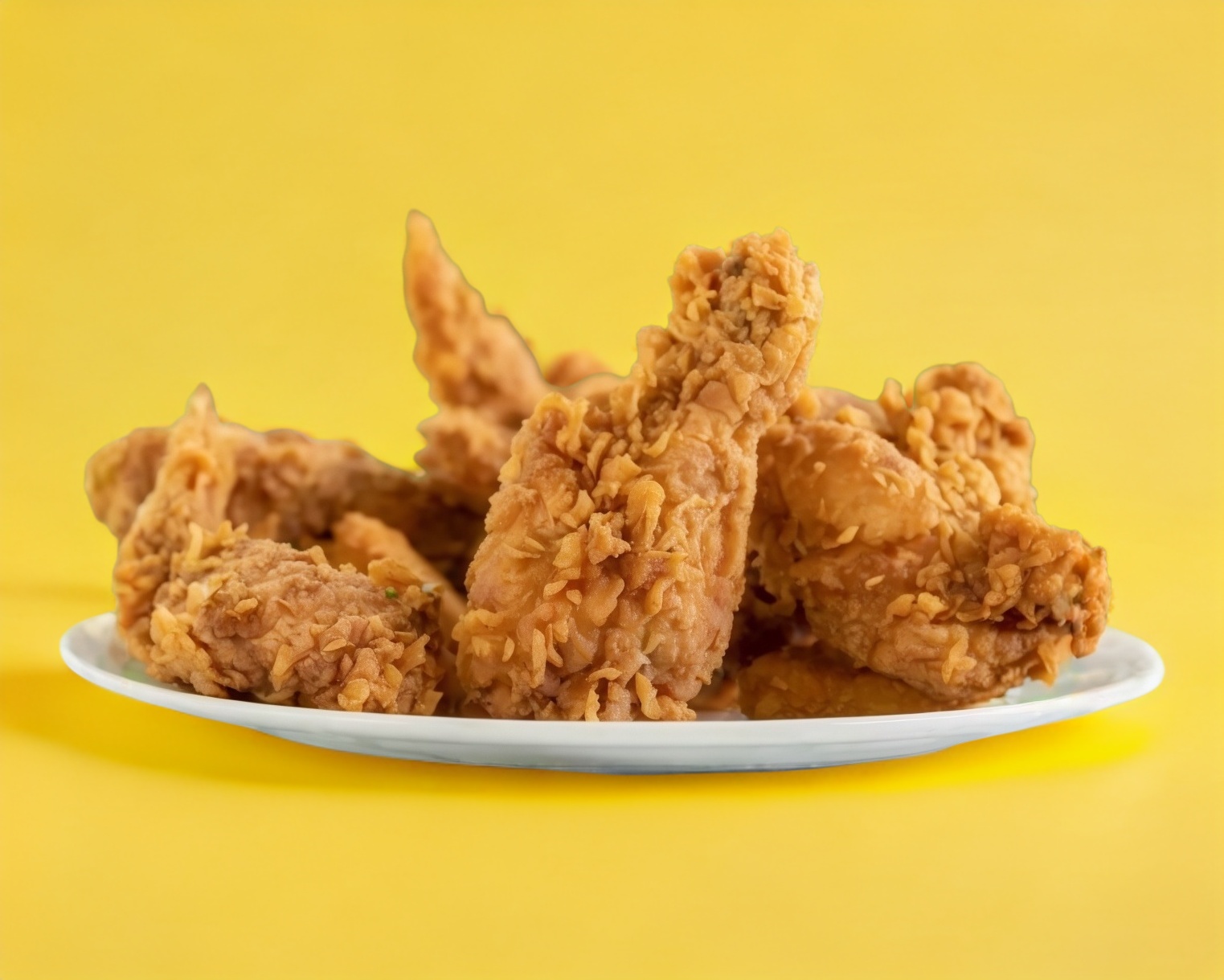 4 Piezas de pollo, 1 orden de papas y 1 aderezo.