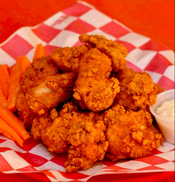 Medio kilo de boneless bañados en salsa y acompañados de zanahoria y aderezo ranch.