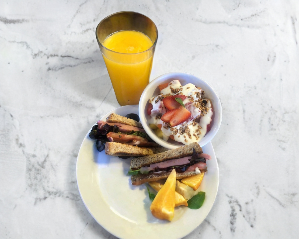 1 sandwich + 1 jugo chico + 1 cocktail de frutas chico(platano, papaya,melon,sandia,guayaba,sandia), los ingredientes extras solo aplican en el sandwich y el cocktail de este combo -