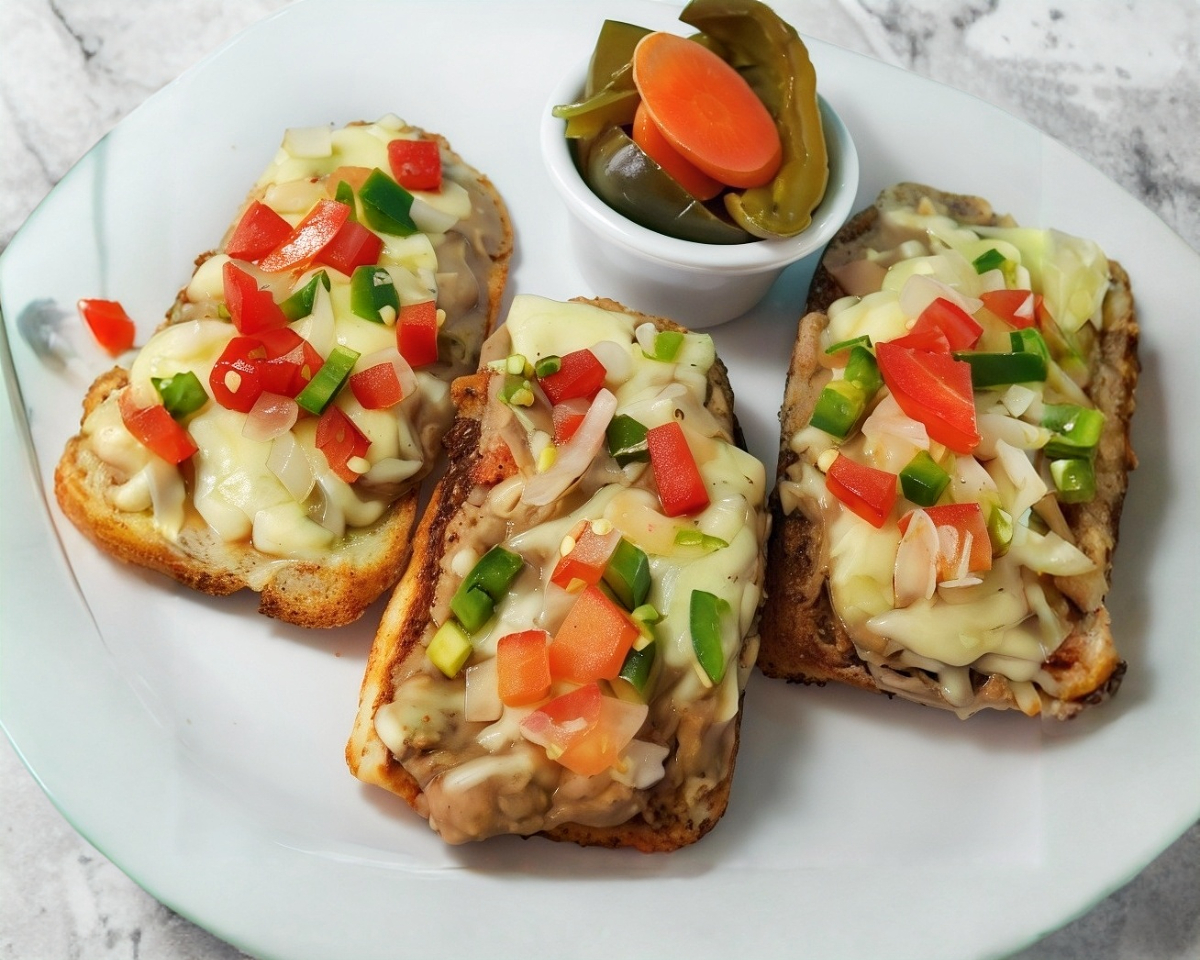3 piezas de pan integral de ajo o especias, queso gratinado y pico de gallo