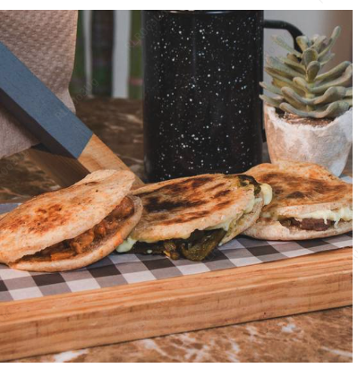 Dos piezas de pan de masa madre, frijoles, queso panela y guiso a elegir.