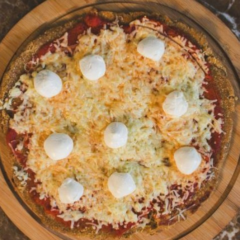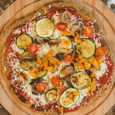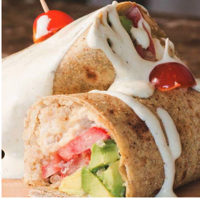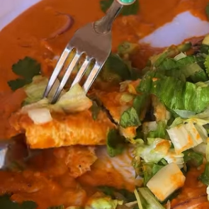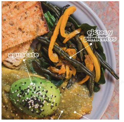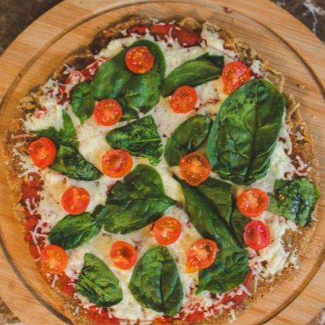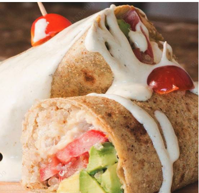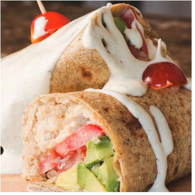 Totopo de coliflor horneado o chicharrón de cerdo, bañado en salsa a elegir, acompañado de queso, aguacate, cebolla morada y crema o yogurt orgánico.