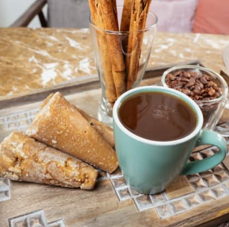 Té negro, cardamamo, canela, anís, clavo, jengibre, pimienta y albahaca.