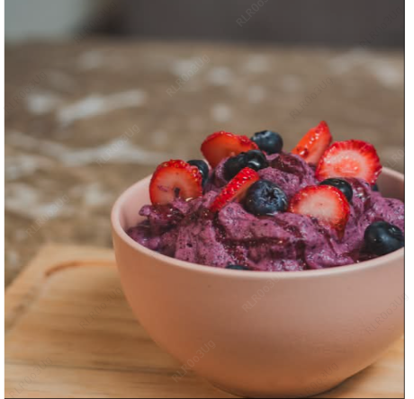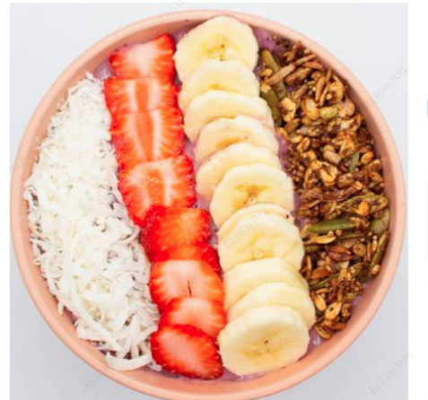 Mix de berries, acai orgánico, leche de almendra, yogurt griego, plátano y miel.