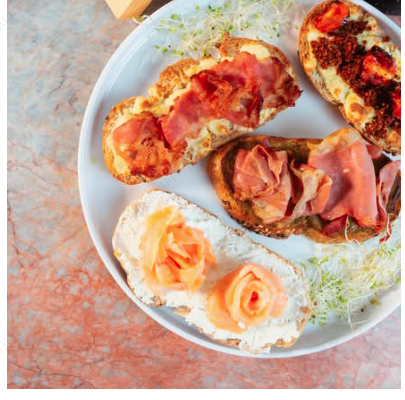 PAN DE MASA MADRE, PESTO DE TOMATE , JAMON SERRANO, ARUGULA Y TOMATEV CHERRUY