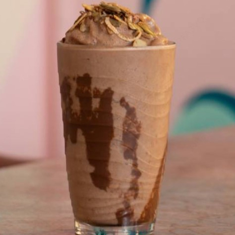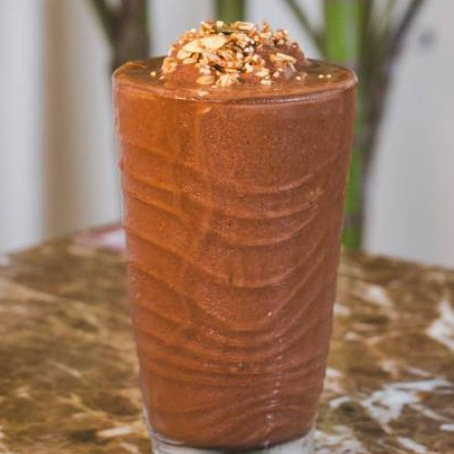 Blueberries, plátano, espinaca, cacao, crema de cacahuate y leche a elegir. 16 oz.