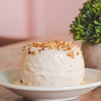 Harina de coco y almendra, monkfruit, huevo, leche, yogurt, zanahoria, nuez, coco y estevia.