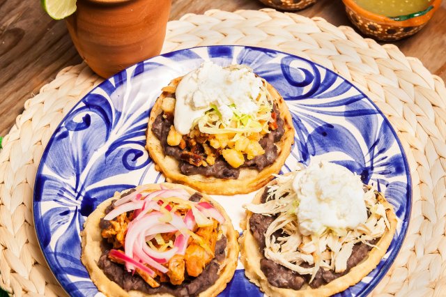 Sope con su respectivo guisado, con verdura, salsa y crema.
