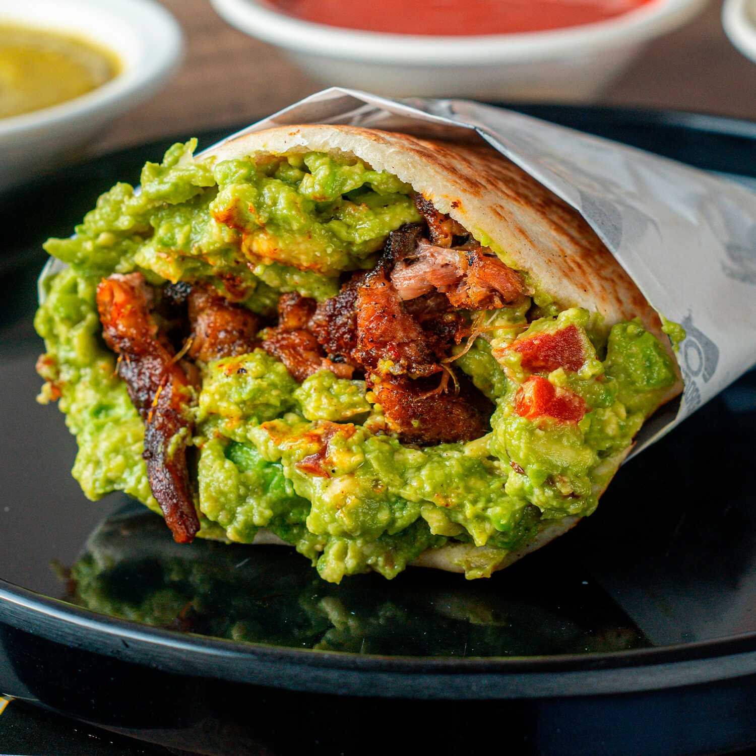 🔥 Gorda al estilo norteño, rellena de guacamolito 🥑, coronada con carnita seca. Y piquito de Gallo💥🌶️