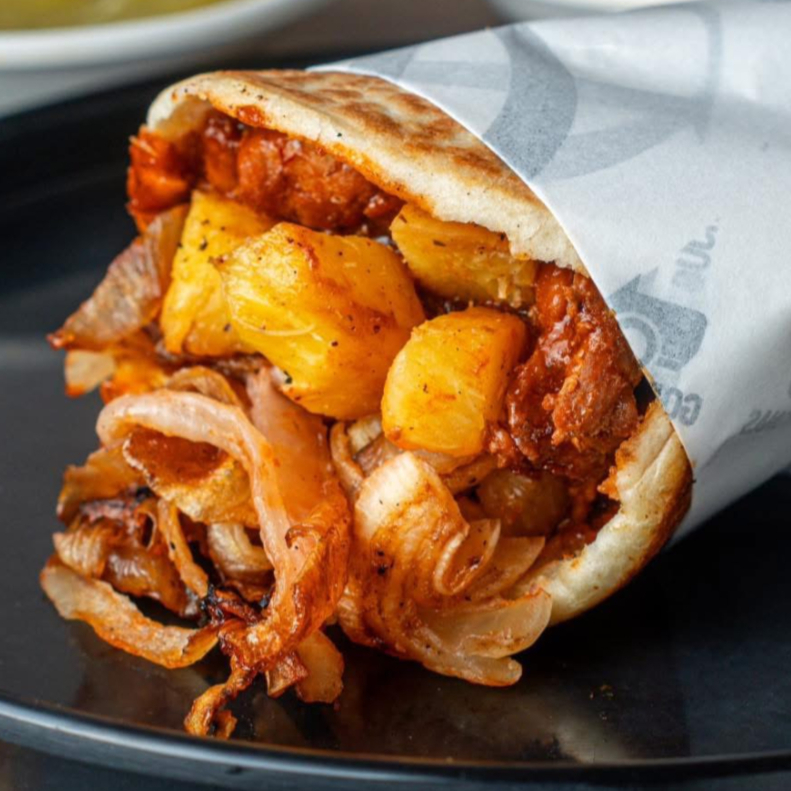 Gorda Grande especial de costilla BBQ con cebollita asada y piñita asada.