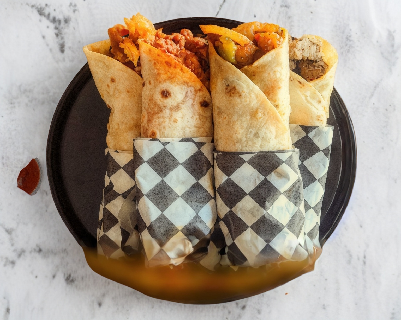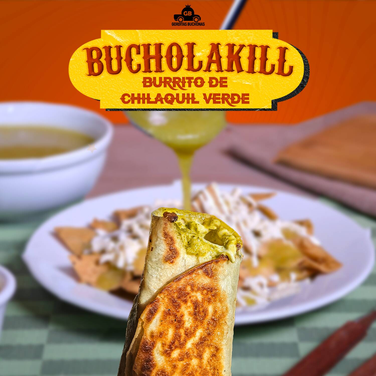 Burrito de chilaquil, en salsa verde, queso y crema.