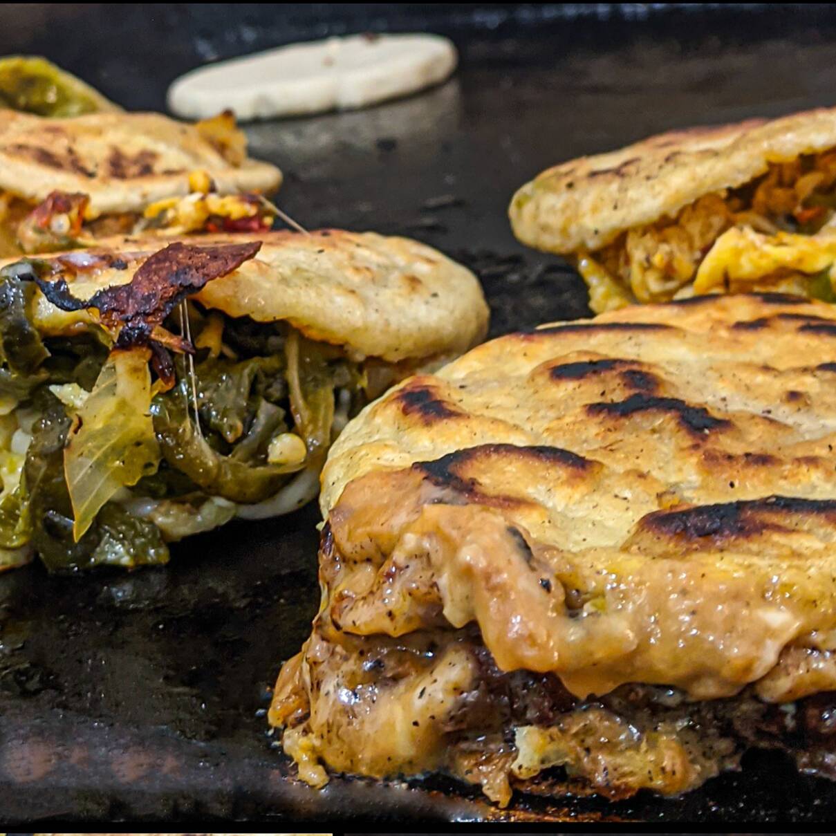 Gordita de prensado. Elige entre masa de maíz o de harina y selecciona tu guiso favorito.