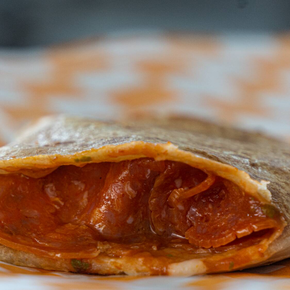 GORDITA DE PEPERONI , QUESO Y SALSA DE TOMATE