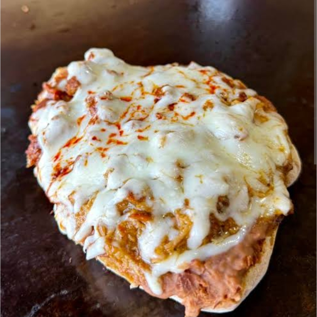Gordita de harina con guiso y queso