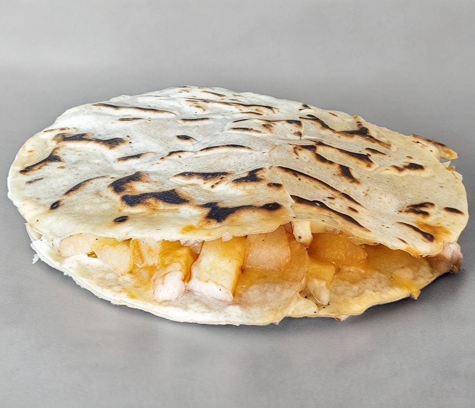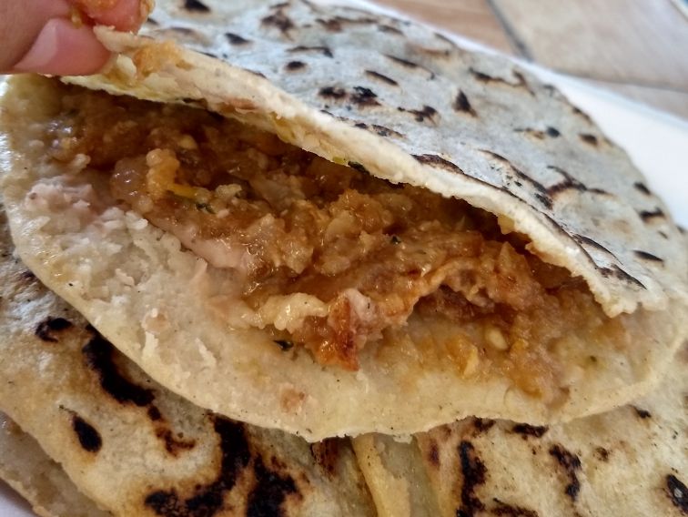 Torteada a mano y al momento, cocida con leña de mezquite. Elegir salsa roja o verde para acompañar.