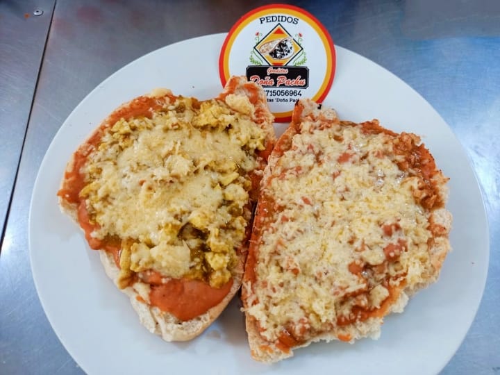 Una tapa de pan con guiso a escoger. Acompañada de queso Chihuahua y frijoles. (Porción personal)