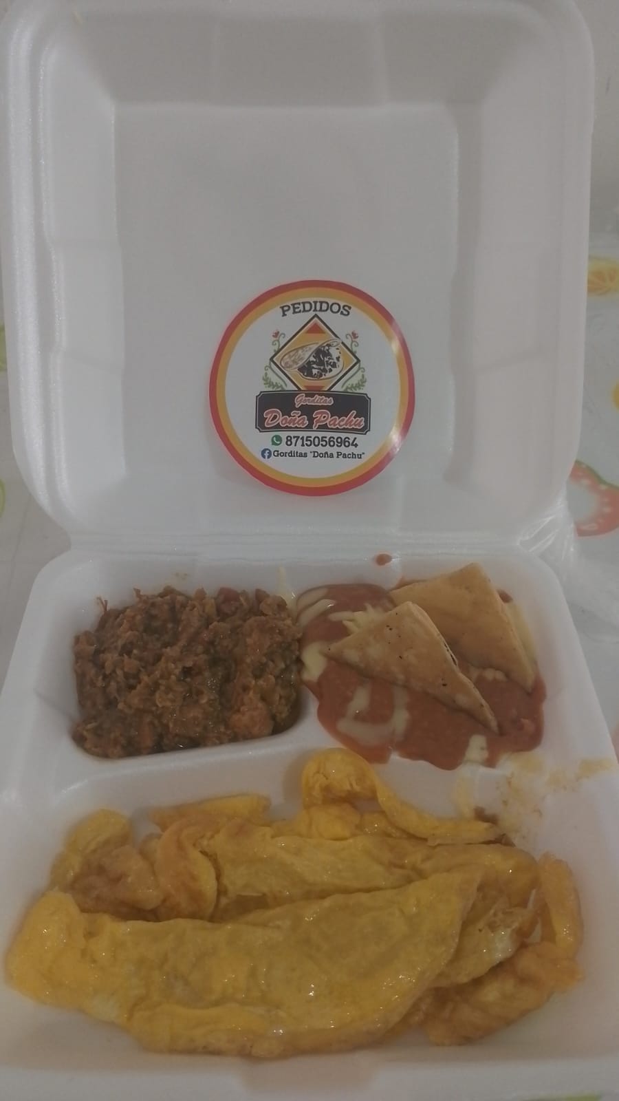 Incluye 2 huevos al gusto, frijoles, queso, y un guiso a elegir con tres Tortillas de harina.