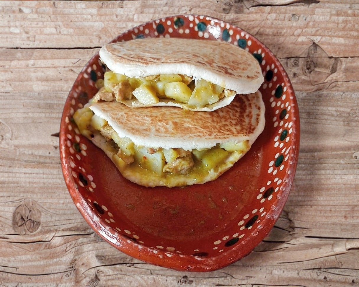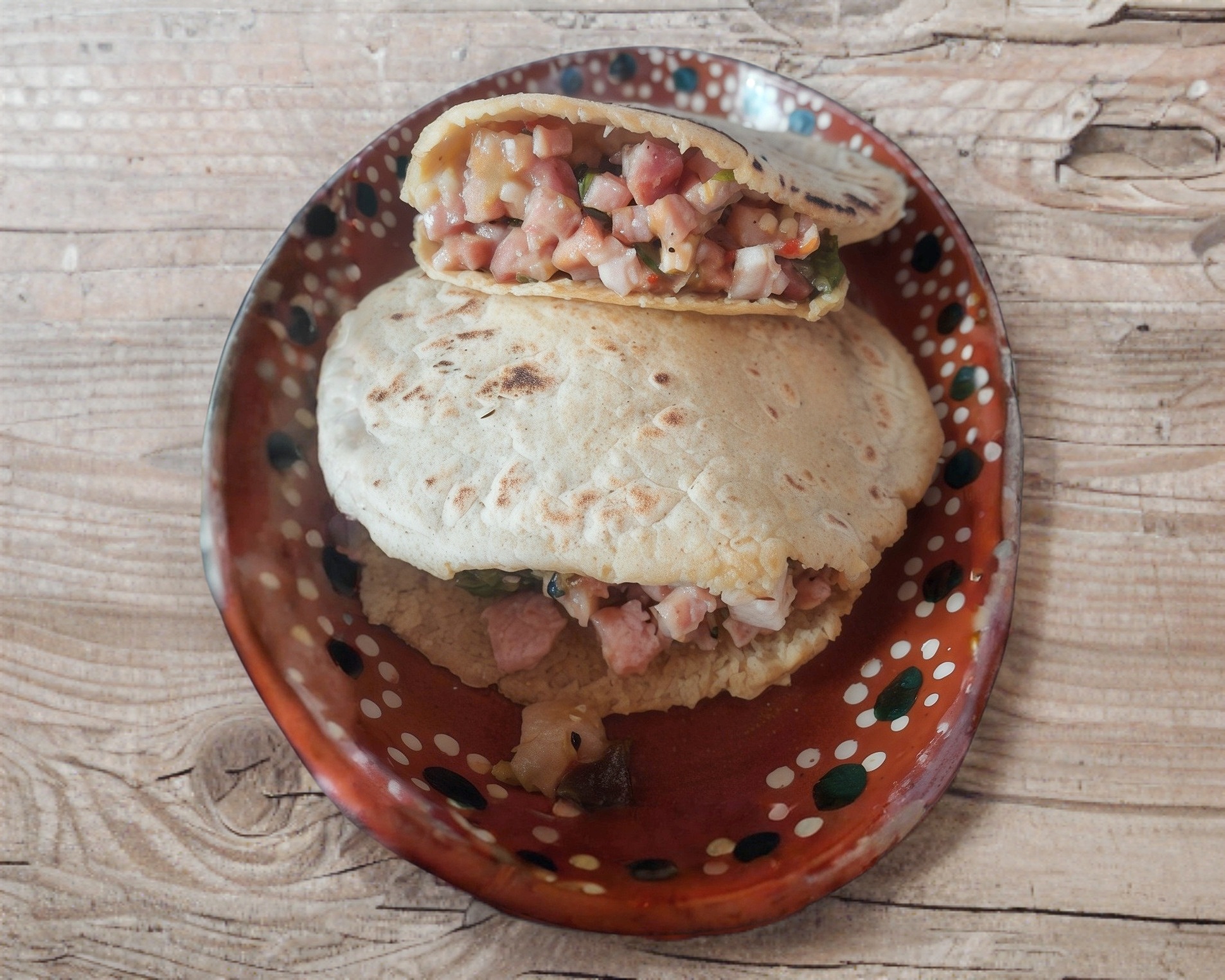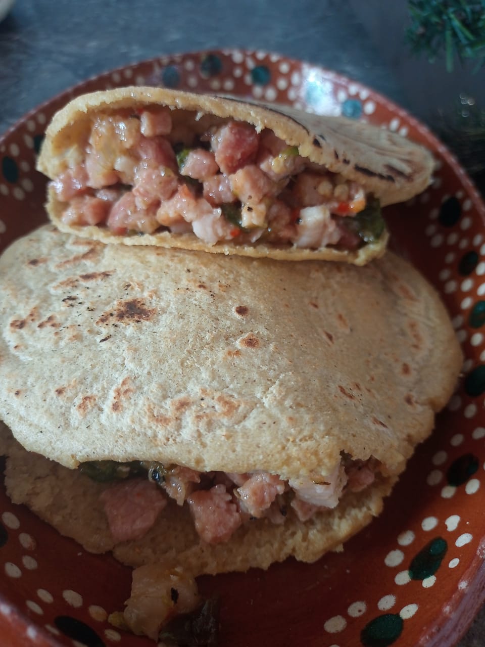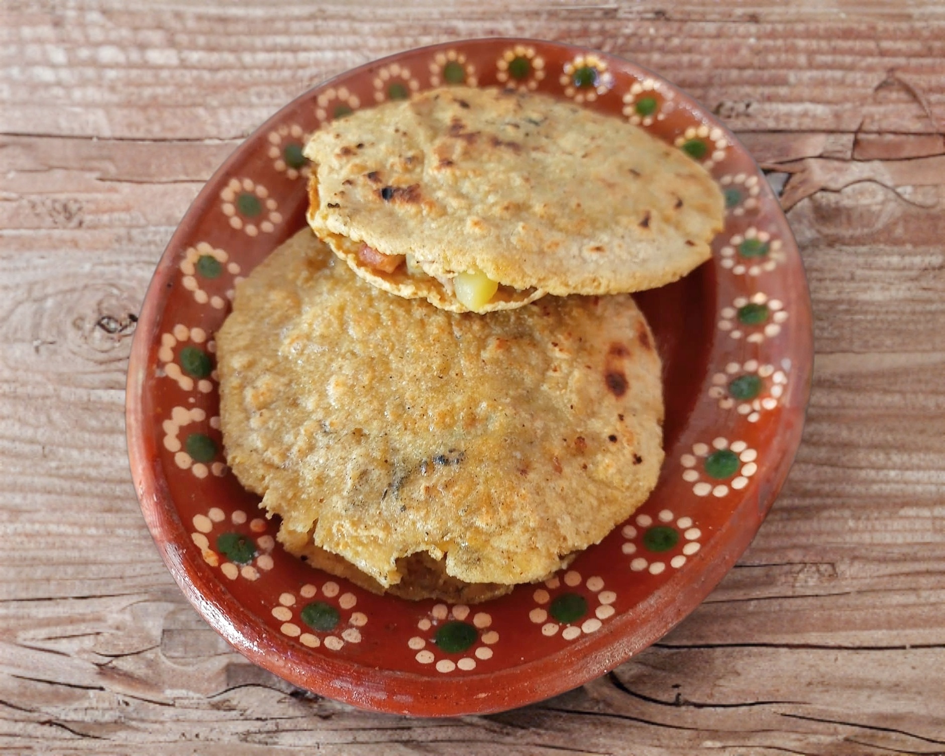 1 gordita harina de maiz, relleno de frijoles con queso.