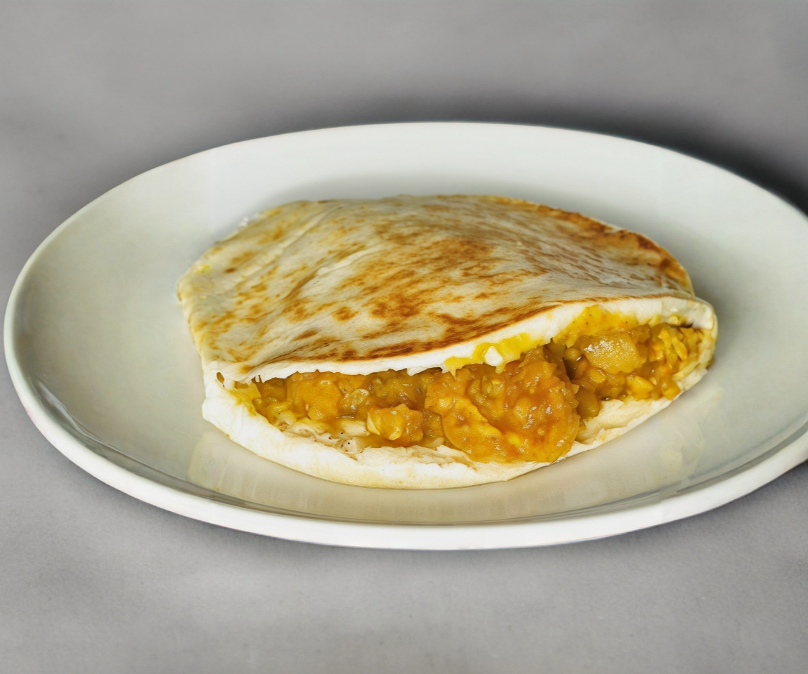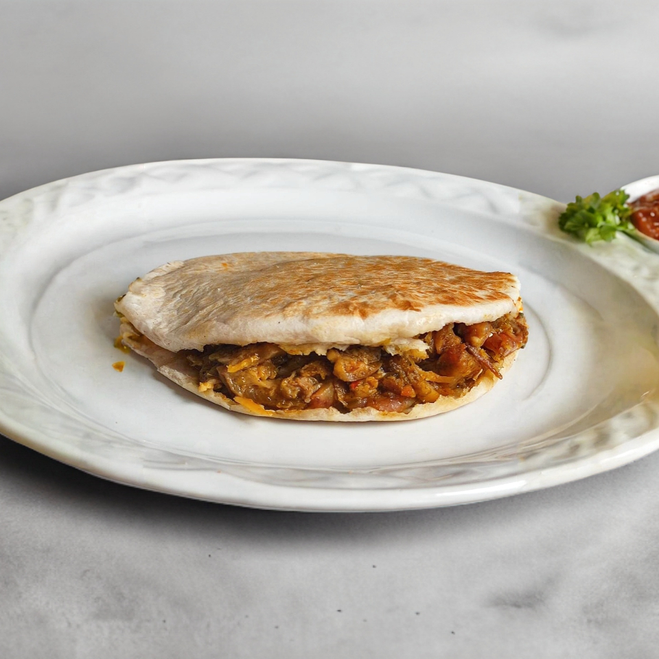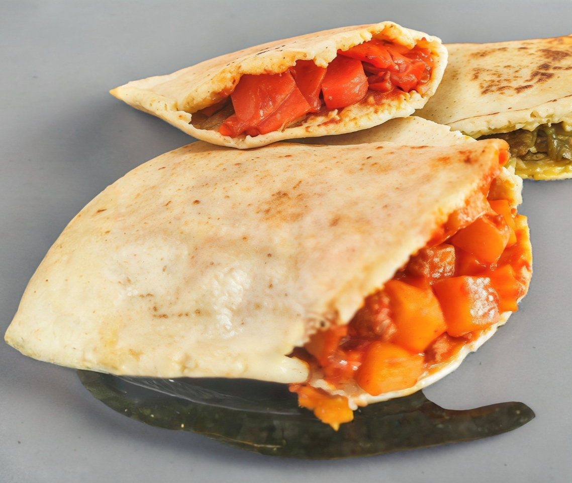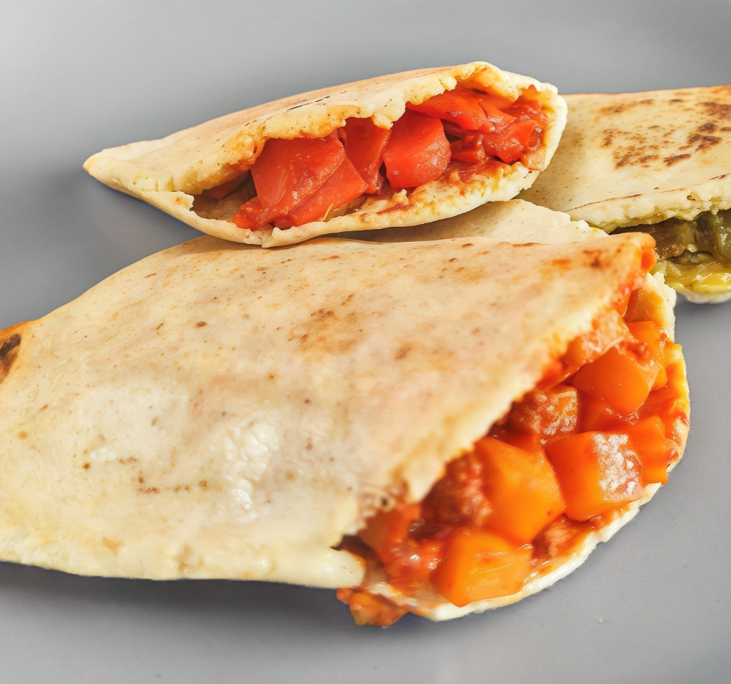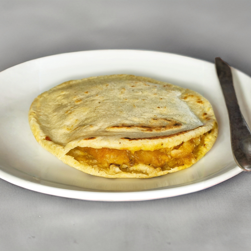 Gordita de harina rellena con carne de puerco y rajas de chile poblano.