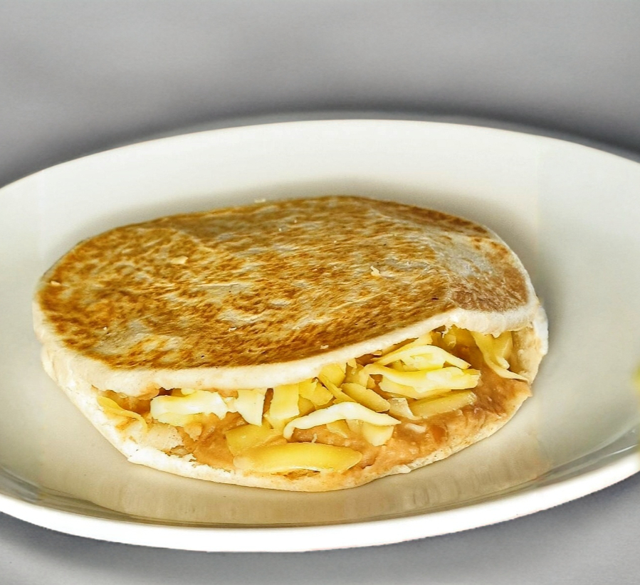 Gordita de harina rellena con rajas de chile poblano guisadas con cebolla.