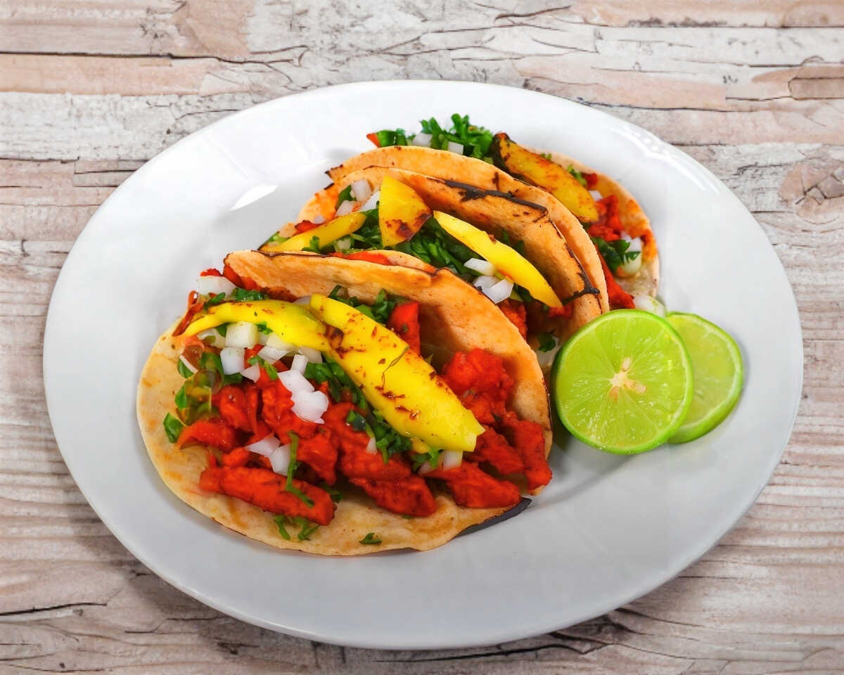 Carne adobada queso blanco cebolla picada piña cilantro salsa