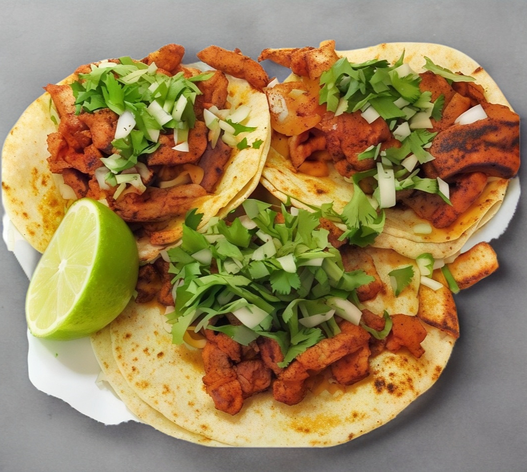Tacos carne de adobada cebolla cilantro salsa y limones.