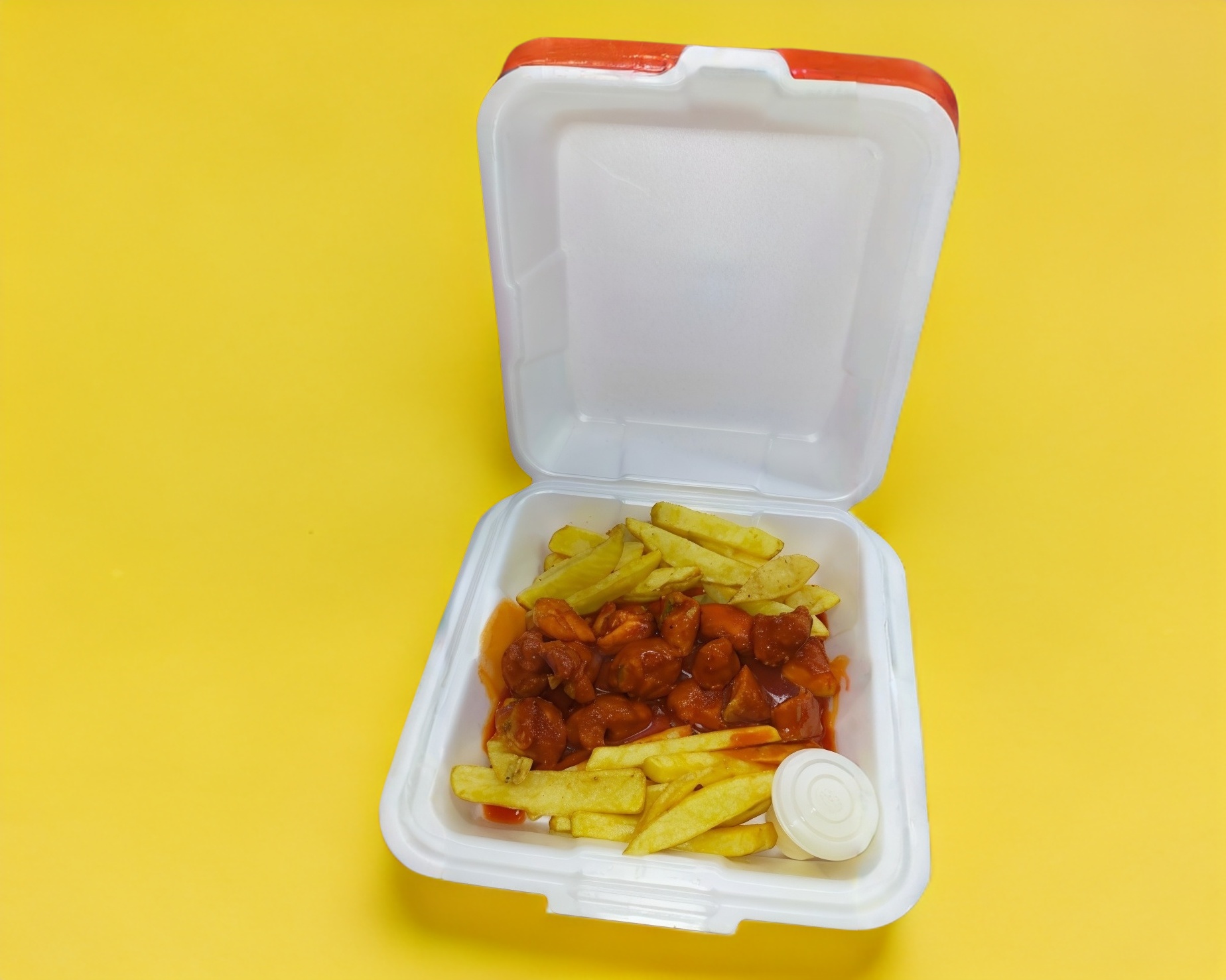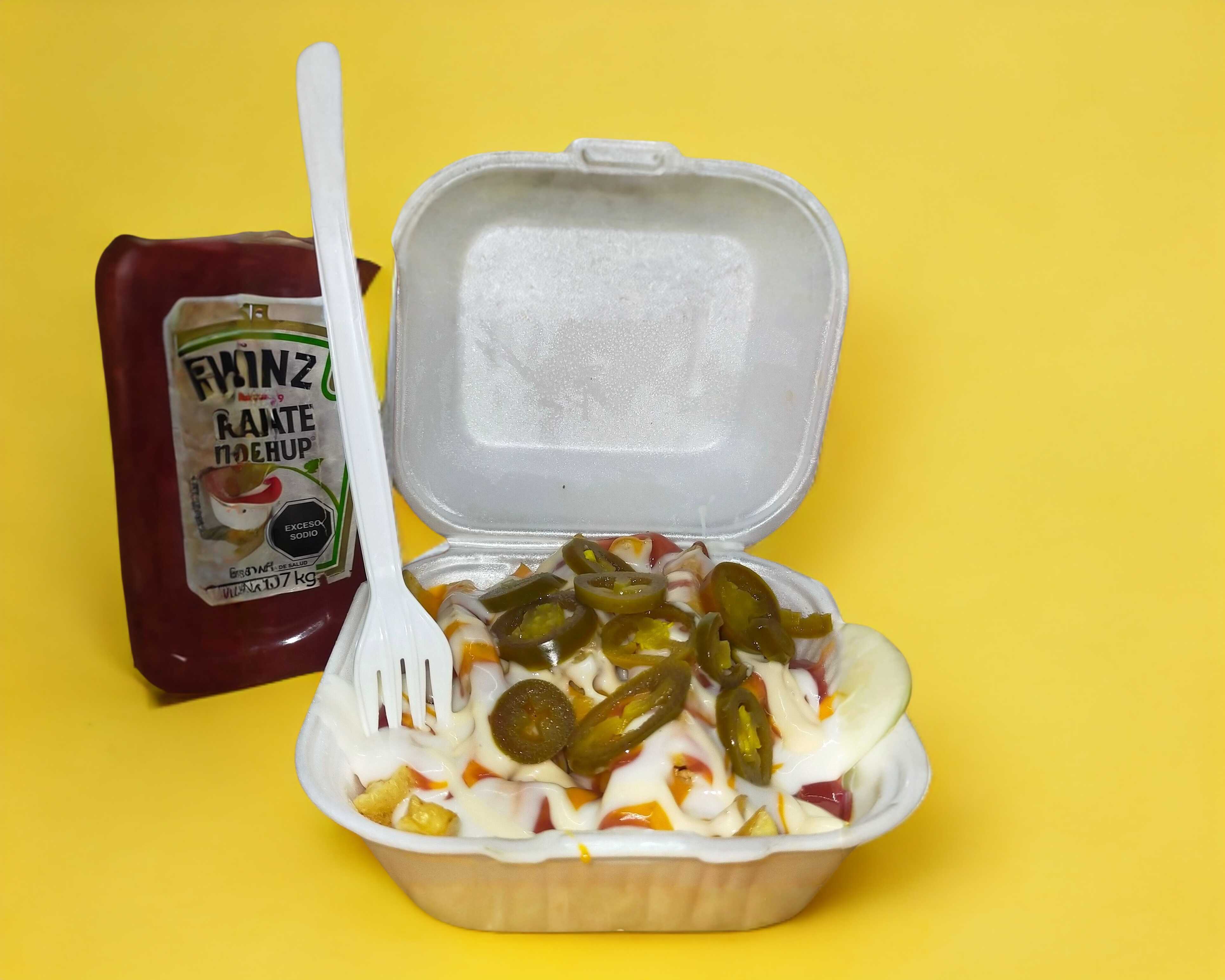 Papas fritas, queso amarillo, mayonesa, crema, chile y catsup.