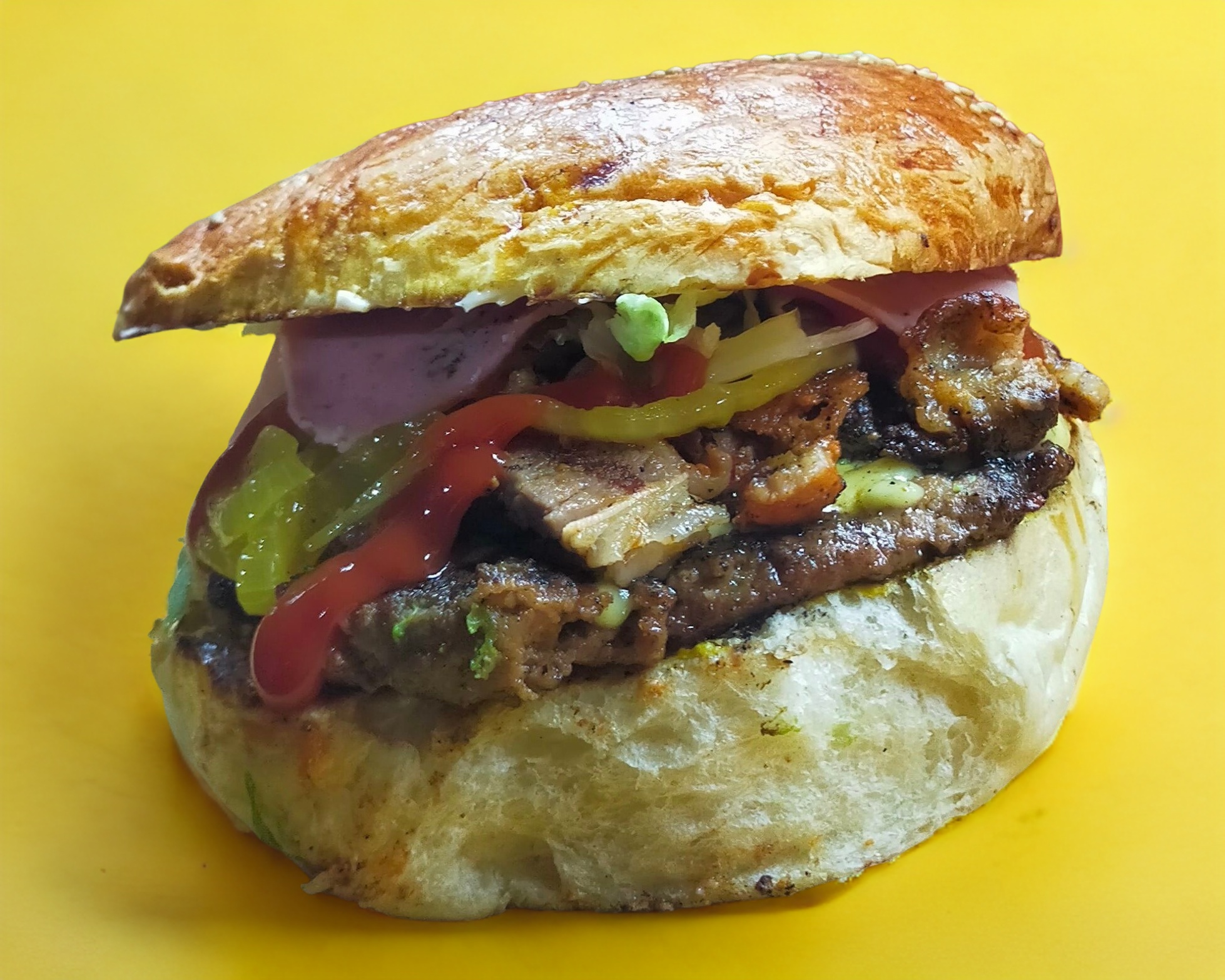 Pan grande,Carne de res 160 gms preparada (no congeladas), Tocino, Queso amarillo ,Jamon, aguacate,cebolla sazonada,mayonesa y mostaza Mc Cormick, chiles curtidos, Catsup Heiz,Lechuga,Tomate.