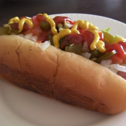 Salchicha, chile, tomate, cebolla, mostaza, mayonesa, salsa de tomate