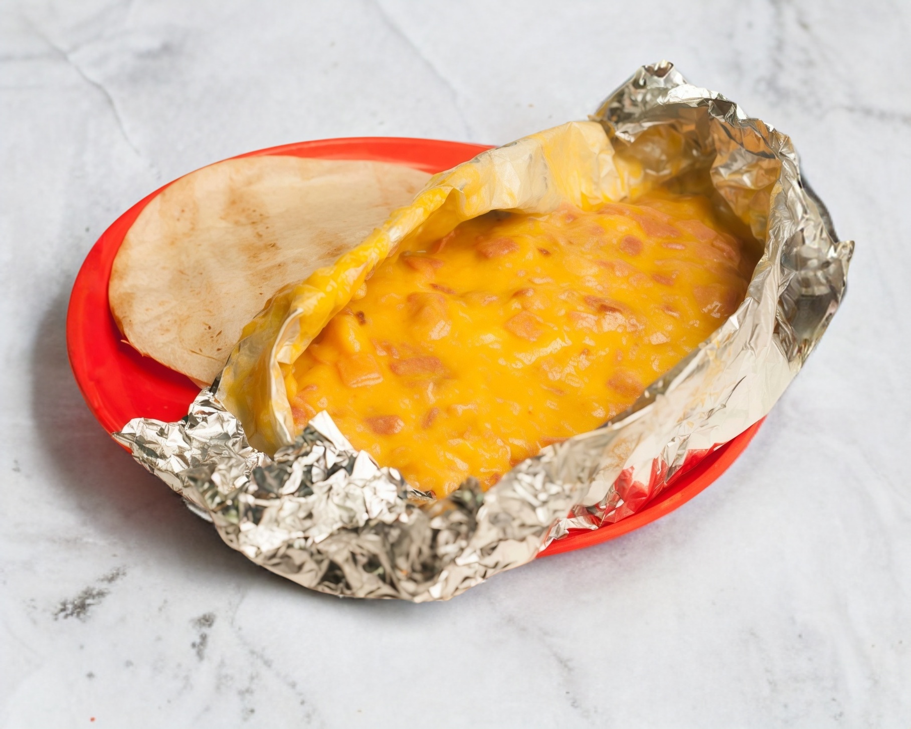 Deliciosa papa asada con tocino, jamón, salami, queso amarillo y queso blanco.