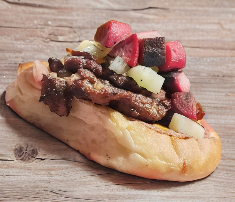 400 gr de Costilla acompañada de una salchicha asada y cebolla asada .