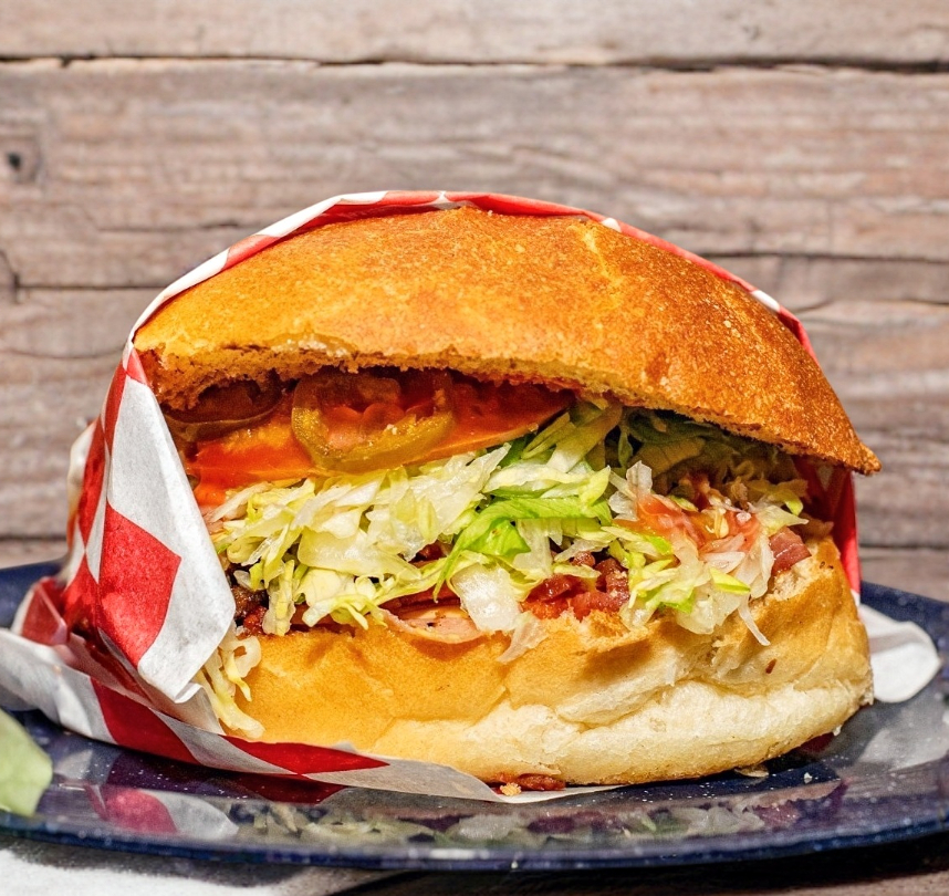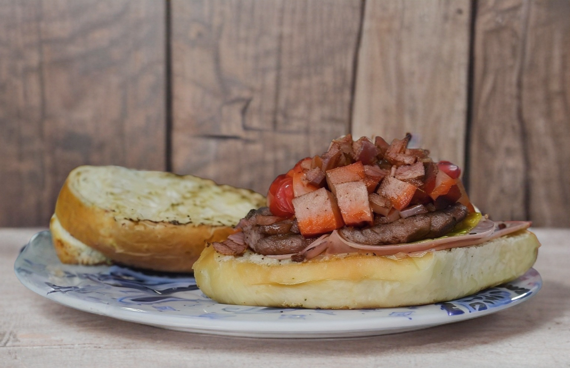 Carne especial de la casa, queso amarillo, jamón y tocino.