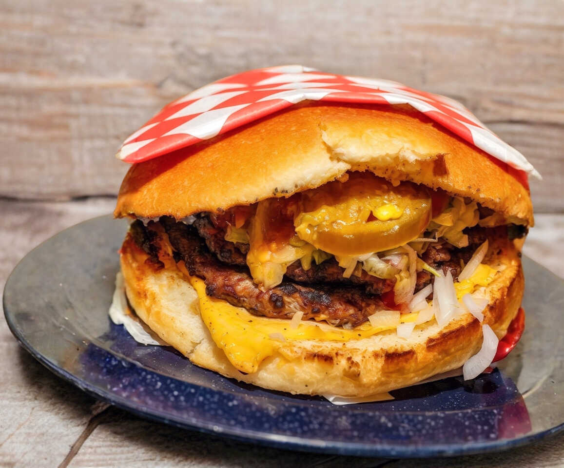 Dos carnes especiales de la casa y queso amarillo.