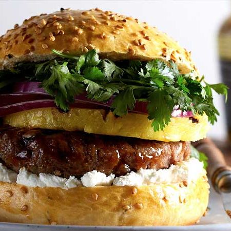 125gr Carne arrachera, jamon, queso, piña, verduras y aderezos